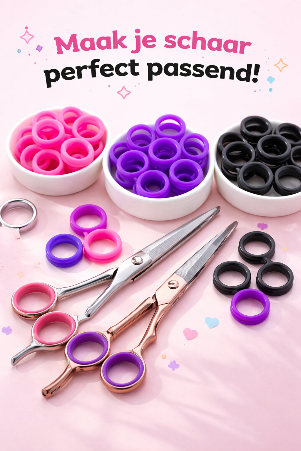 Ideaal wanneer de ogen van je schaar nét iets te groot zijn, waardoor je minder stabiel werkt. Met deze ringen zorg je voor een betere pasvorm en meer precisie.